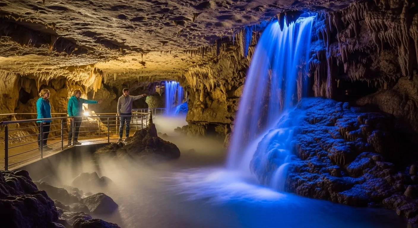 La visite guidée dure 65 minutes exactement. Les guides expliquent la géologie, l'histoire, les formations calcaires. Ils éteignent toutes les lumières pendant 30 secondes. L'obscurité totale. Puis rallument les LED. L'effet est saisissant.